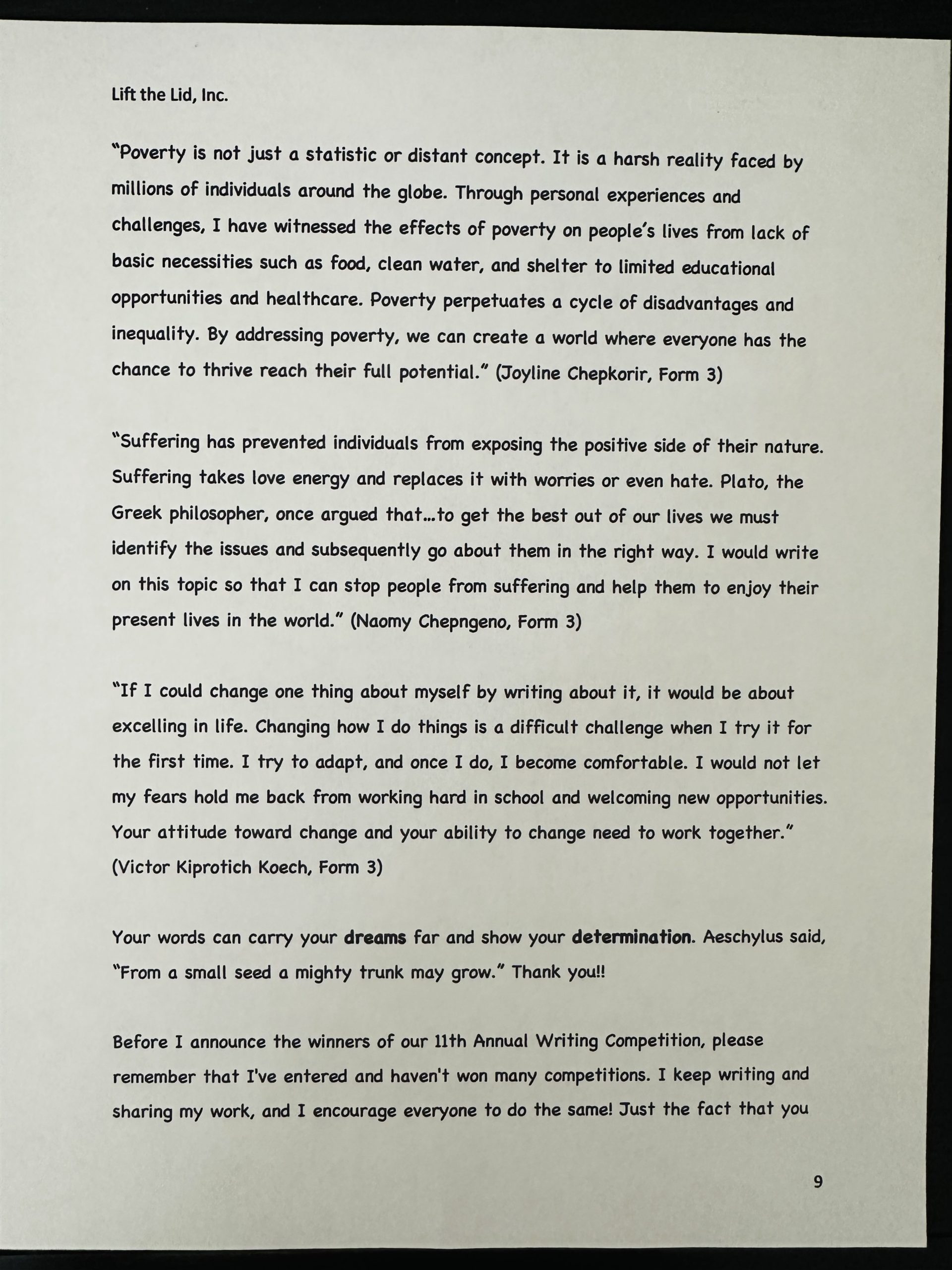 We’ve held ELEVEN annual writing competitions at Mogonjet Secondary School in Kericho (Bomet County), Kenya, and I can honestly say that it shows in the students’ writing. I had a recent conversation with my partner at the school and said how much stronger their writing has become over the years in terms of content, passion, and grammar!